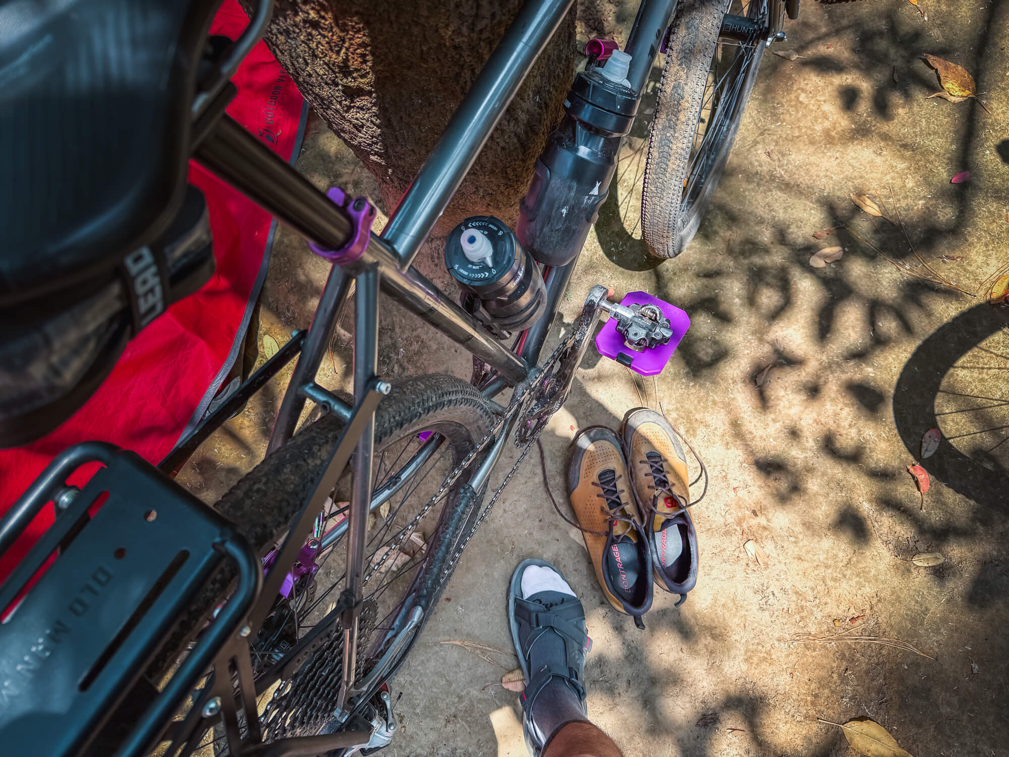 Otro caso en el que he podido aprovechar la versatilidad que ofrecen estos adaptadores ha sido en algunas escapadas de bikepacking. En este tipo de situaciones, no es raro que tengas que subirte a la bicicleta para ir a reabastecer víveres, explorar los alrededores o conocer algún lago o playa cercana de la que tanto te han hablado. Si el trayecto es tranquilo, no me molesto en ponerme las zapatillas de ciclismo. Con los Mousetrap, puedo llegar a mi destino con tenis o incluso chanclas, sin complicaciones.